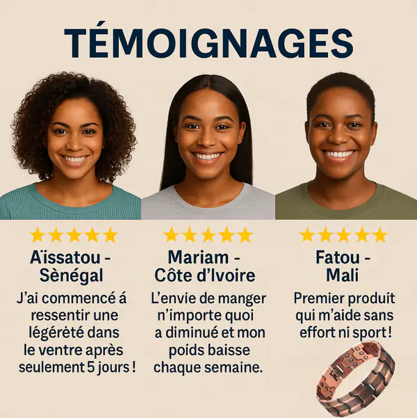 Ne laissez pas passer cette opportunité ! Cliquez sur “Commander” pour recevoir votre bracelet de thérapie magnétique et commencer à profiter de ses bienfaits dès aujourd’hui. Une solution naturelle, pratique et efficace pour améliorer votre énergie, votre silhouette et votre bien-être.