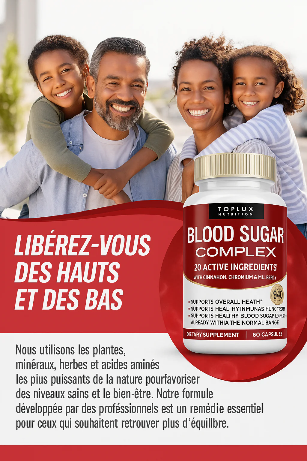 Blood Sugar Complex est la solution idéale pour ceux qui souhaitent stabiliser naturellement leur taux de sucre dans le sang. Formulé à base d'ingrédients végétaux puissants, ce complément alimentaire agit en douceur pour aider votre organisme à maintenir un équilibre glycémique optimal, jour après jour.